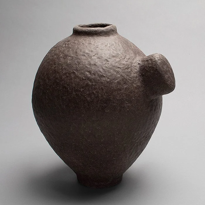 As a dancer practises pliés and a singer scales I make a few of these I am too sculptures every year. The first one named itself I am then the second and thereafter could only be I am too. The form is basically an open ovoid with attitude. Each is unique and not numbered. One of them can cost a day into days to coil then they are multiple fired from low to high. After each firing I grind and polish till the final maturing temperature of the clay is reached - depending on the clay 1120 centigrade to 1200 centigrade. The sculpture is always new even for my photographer Rob Bohle who has worked with them since 2000.